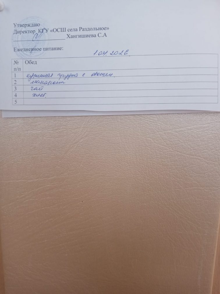 Мектептегі тамақтану 01.04.2026 ж.