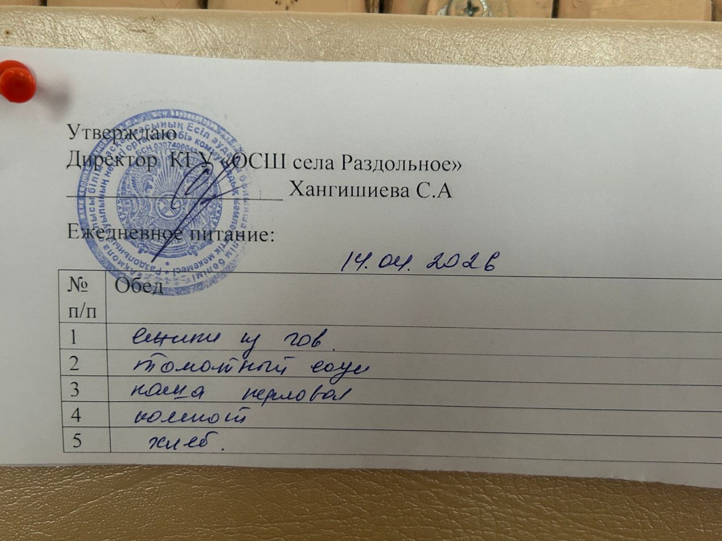 Мектептегі тамақтану 14.04.2026 ж.