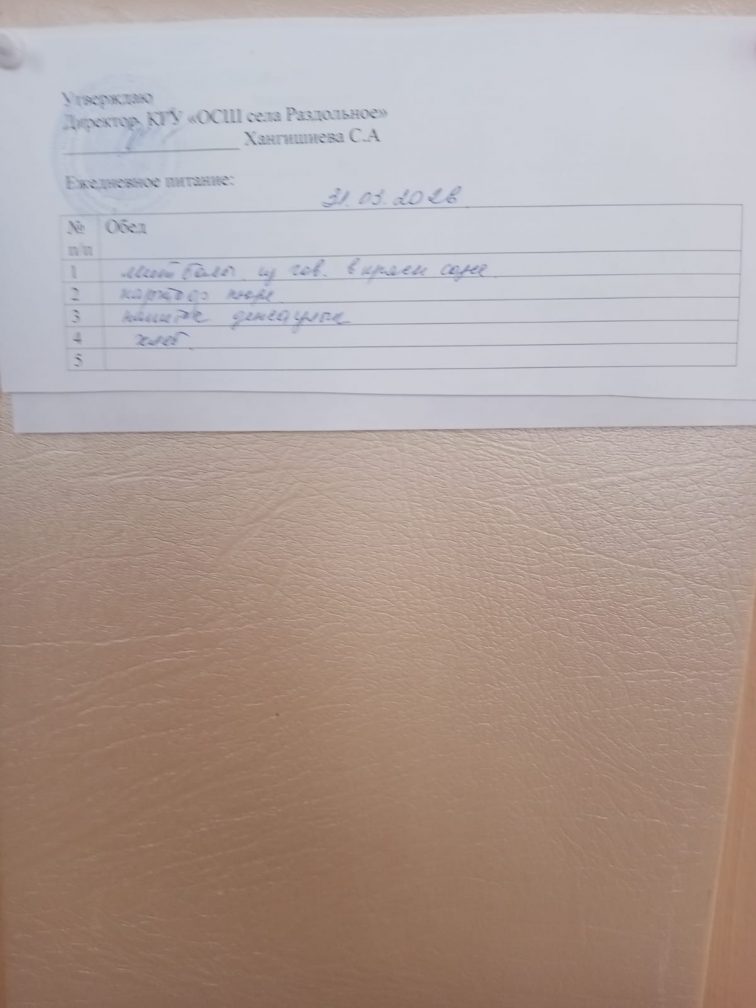 Мектептегі тамақтану 31.03.2026 ж.